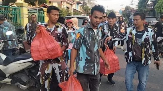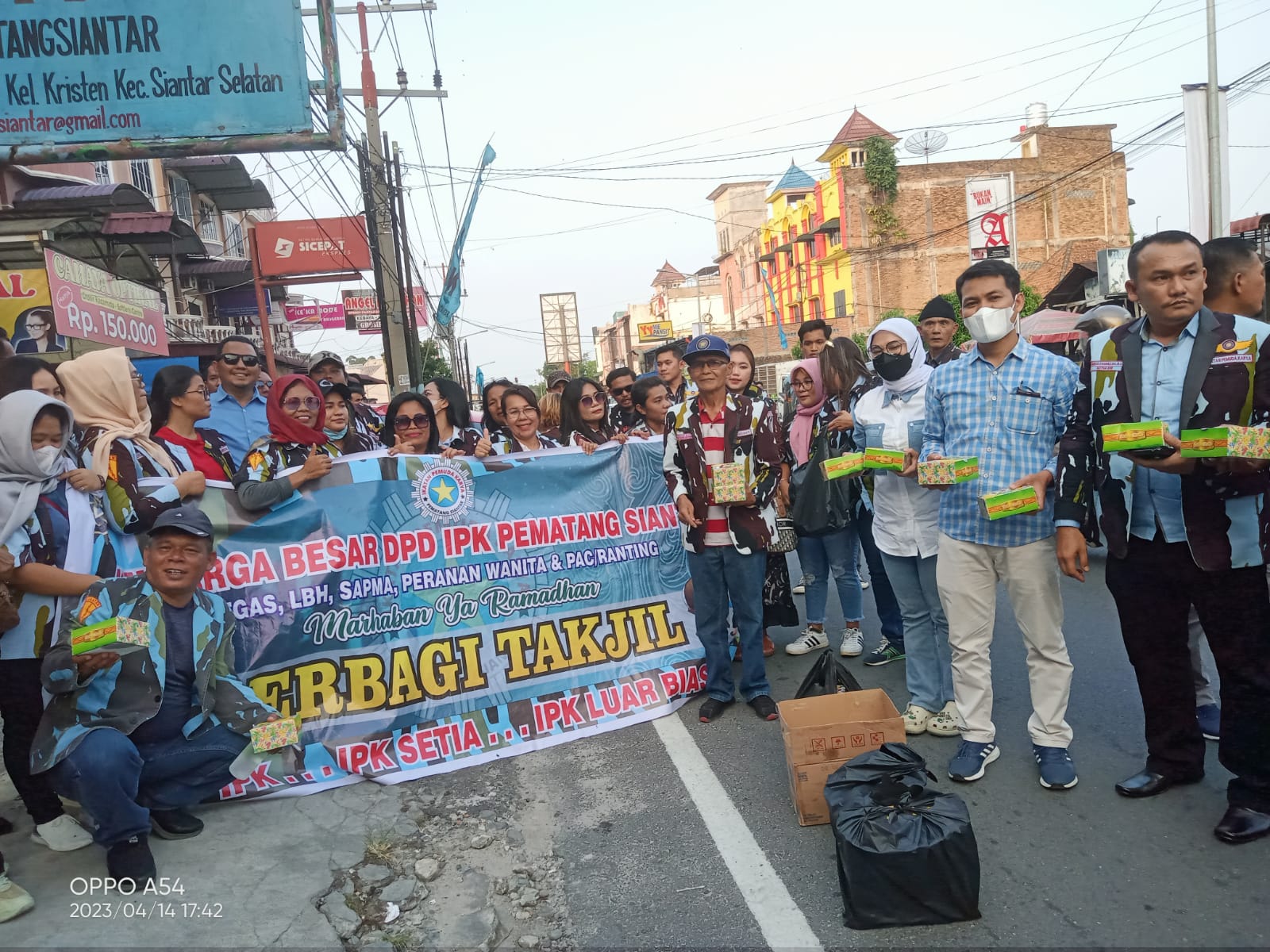 Tampak terlihat ratusan personil berseragam IPK baik dari Satgas, Satuan Pemuda Mahasiswa (SAPMA), Lembaga Bantuan Hukum (LBH), Satuan Peranan Putri karya (SPK), Serikat Buruh Pekerja Karya (SBPK) dilokasi pembagian takjil.