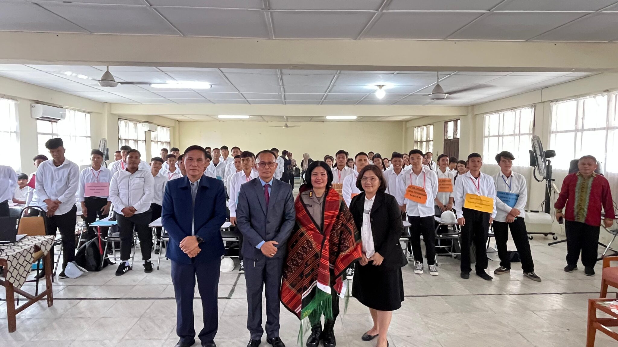 Tak hanya inovasi dan teknologi, karakter dan nilai kebangsaan juga menjadi pilar penting. Narasumber dari pemerintahan dan kepolisian hadir memberikan pembekalan. Camat Medan yang diwakili Sukma Dewi, S.STP, M.Si, menekankan pentingnya integritas dan etika akademik.