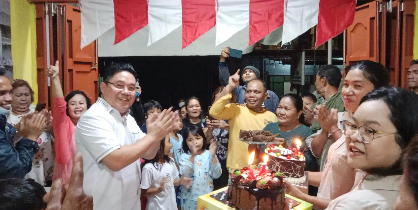 Dari pantauan awak media malam itu, terlihat puluhan warga datang beramai-ramai dengan membawa kue ulang tahun, sembari menyanyikan lagu Selamat Ulang Tahun untuk Patar Luhut Panjaitan.