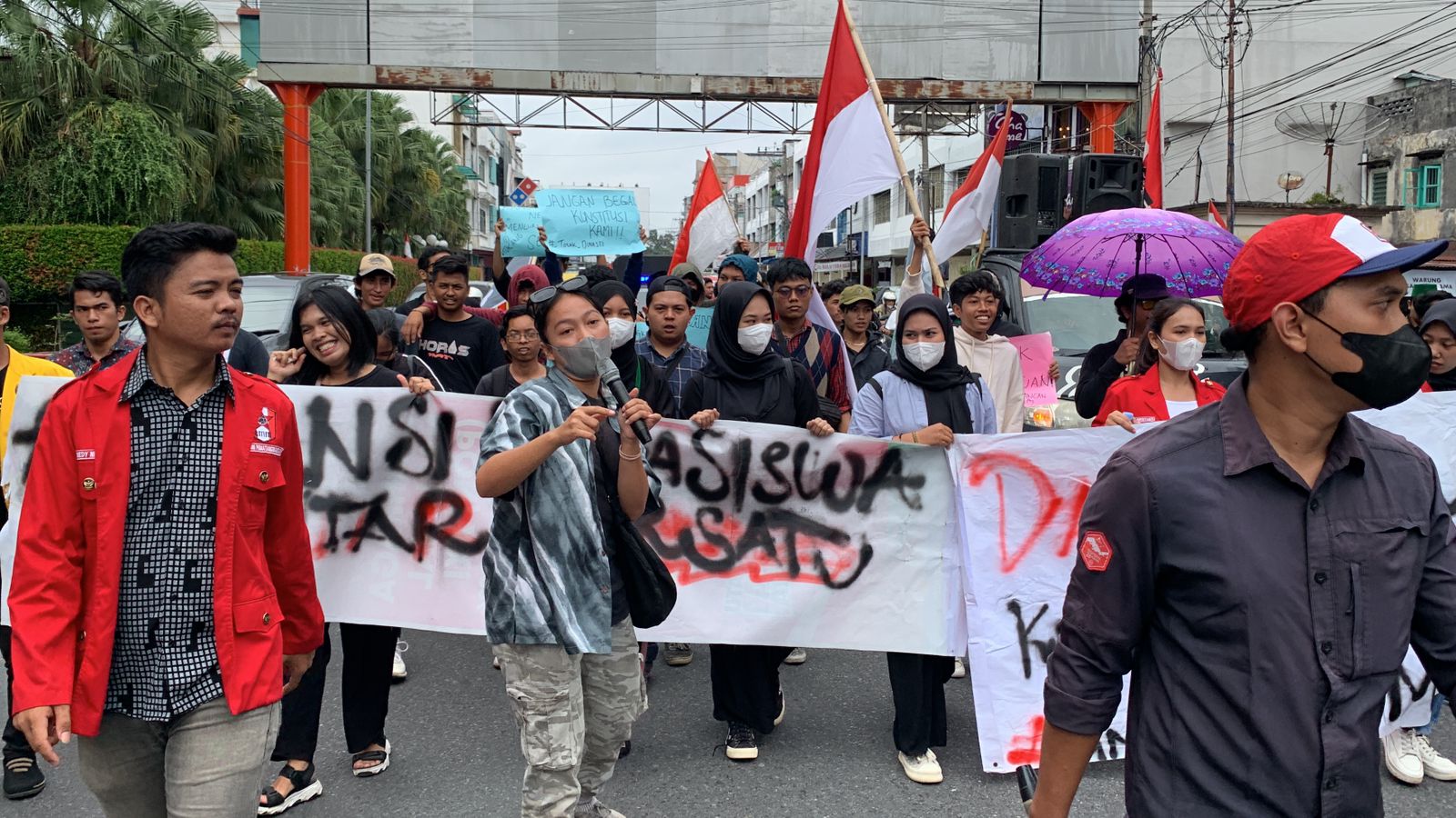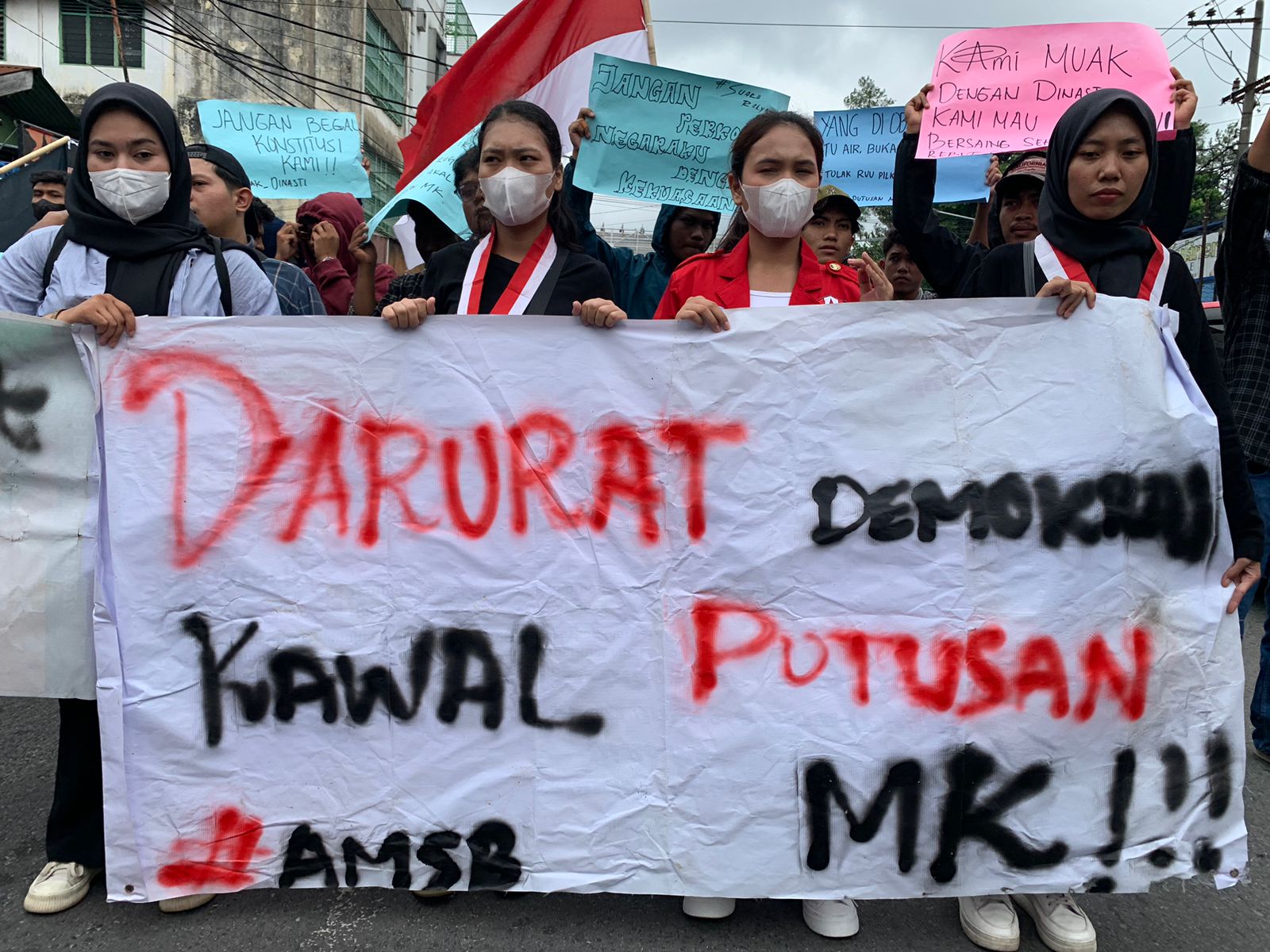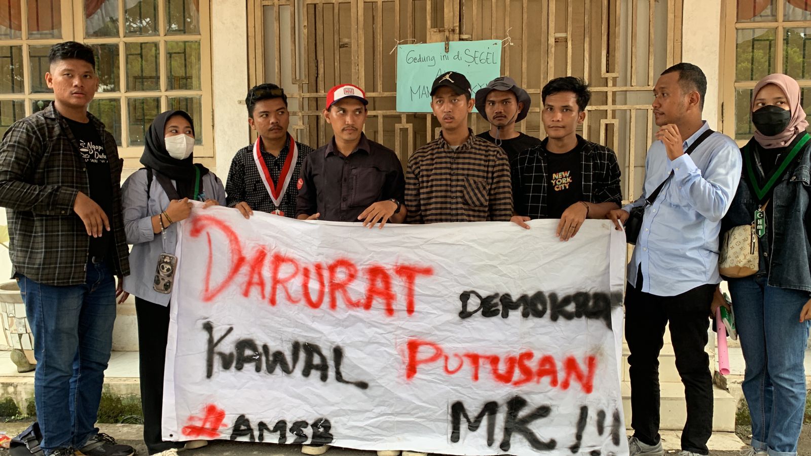 Dari beberapa tuntutan yang telah kami sampaikan sehingga kami membawakan Grand Isu: “Darurat Demokrasi, Kawal Putusan MK,” ucap Jira selaku Pimpinan Aksi AMSB